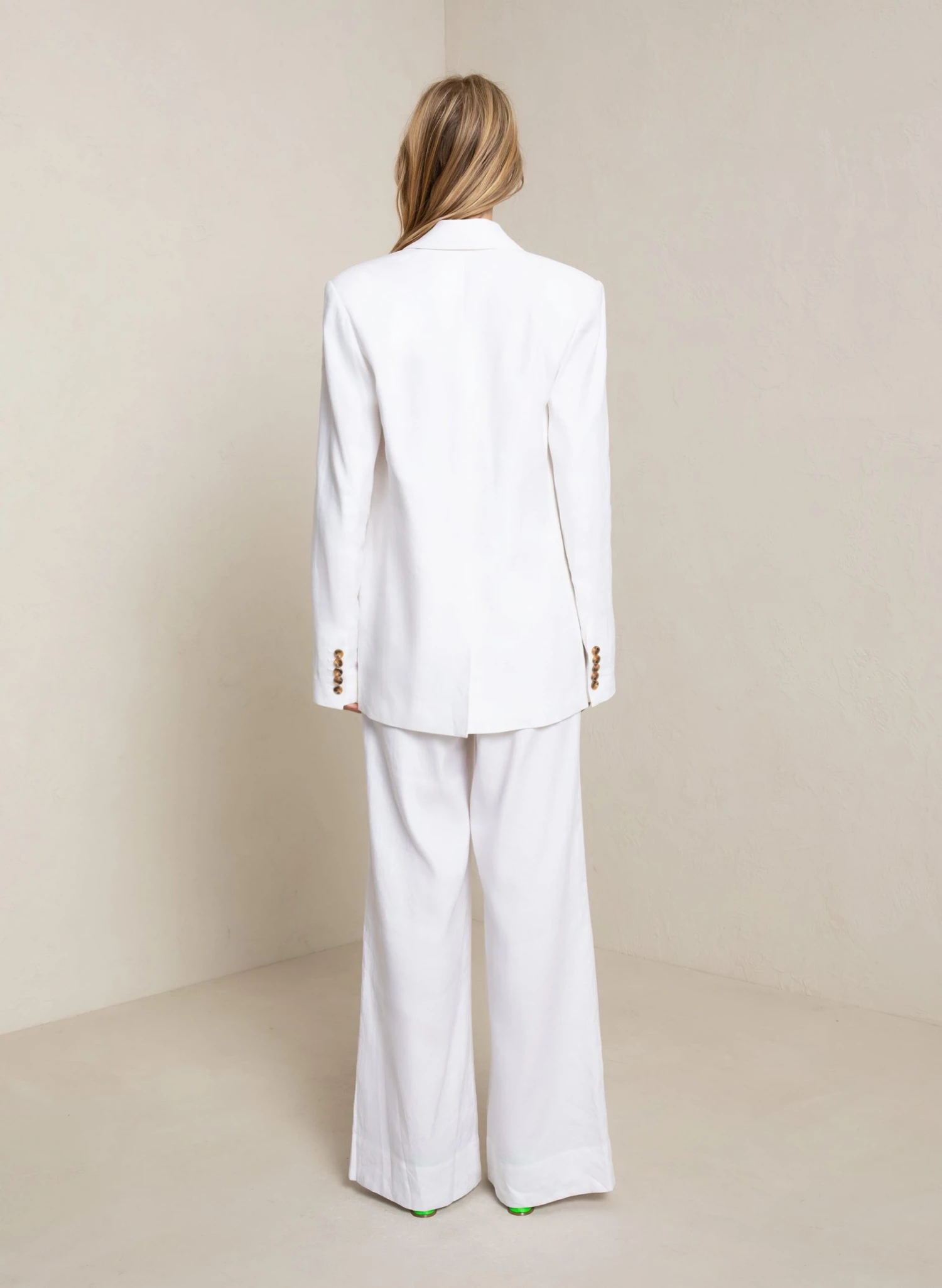 The Dakota Jacket is crafted from soft viscose in a crisp bright hue. This tailored silhouette is cut for an oversized fit, featuring pointed lapels and single button closure.