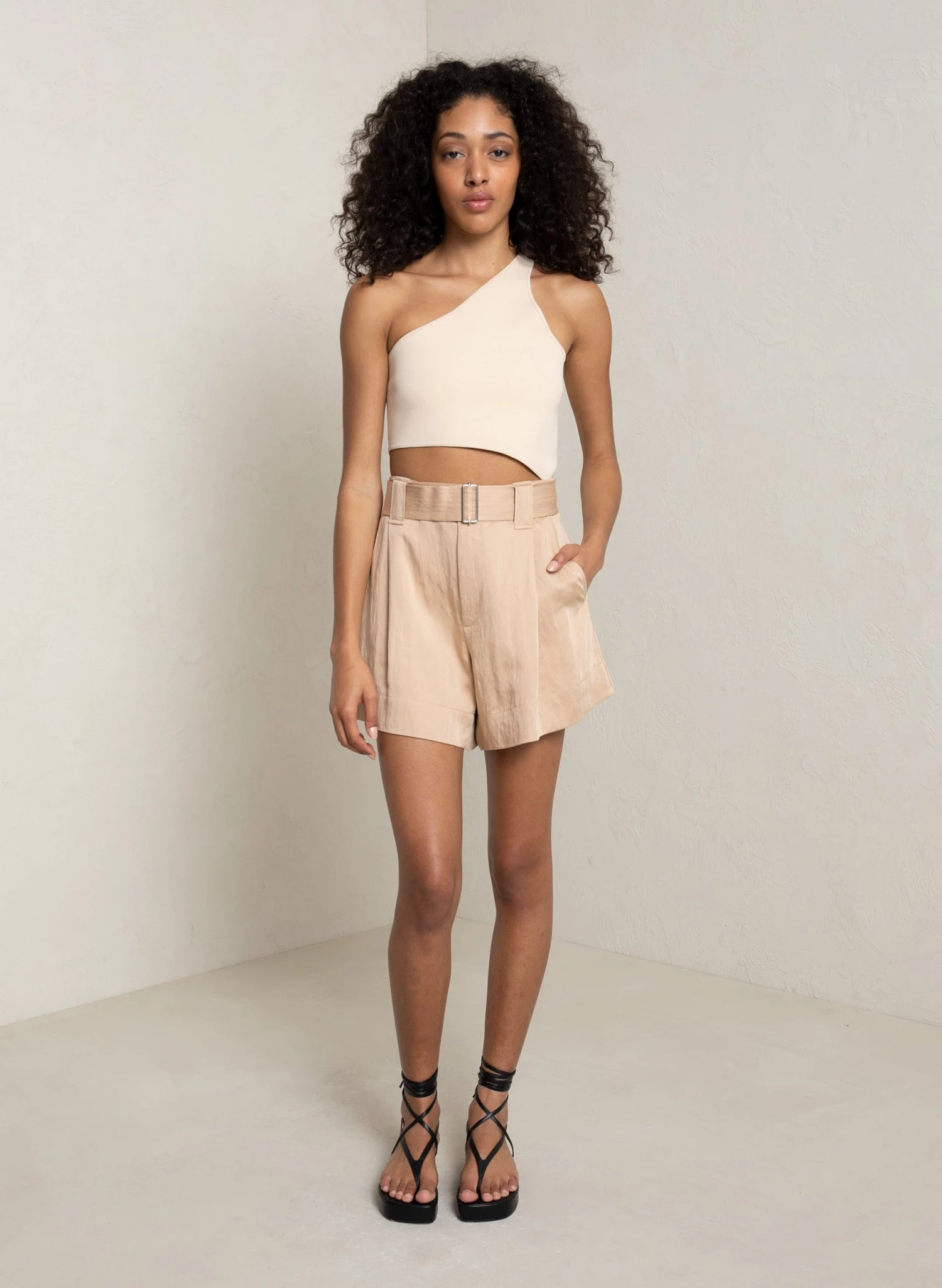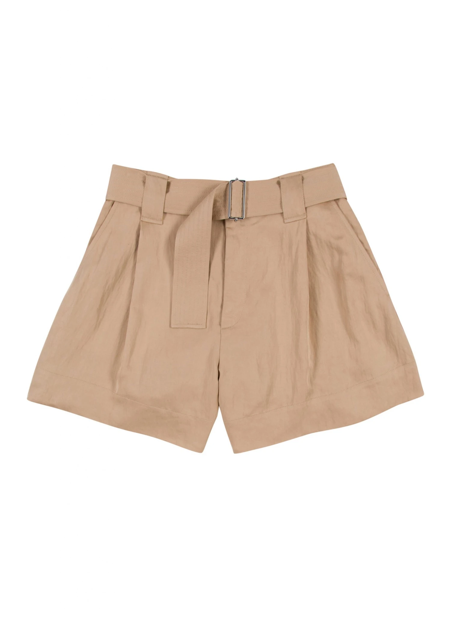 The Grayson Short is crafted in our relaxed viscose fabric in an earthy shade of tan. This fluid silhouette is pleated, featuring a matching belt and side slit pockets.
