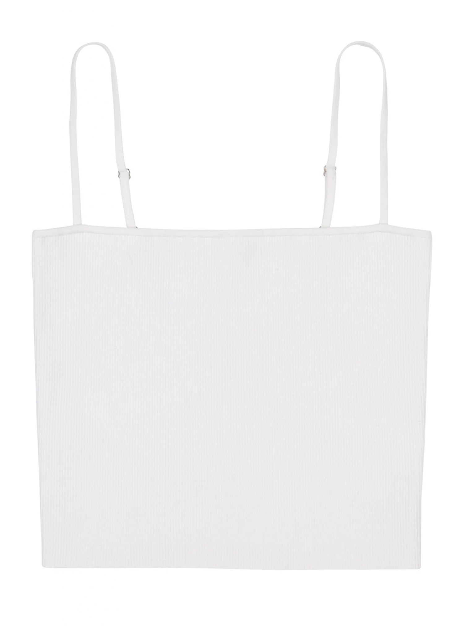 The Darby Tank is knitted from ultra-soft viscose in wardrobe-essential white. This fitted silhouette features thin straps and a modern square neckline.