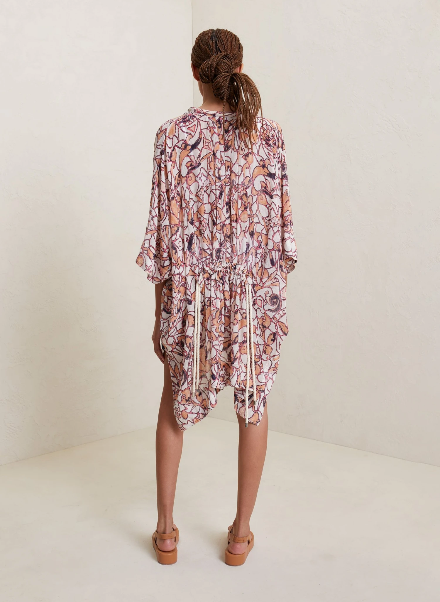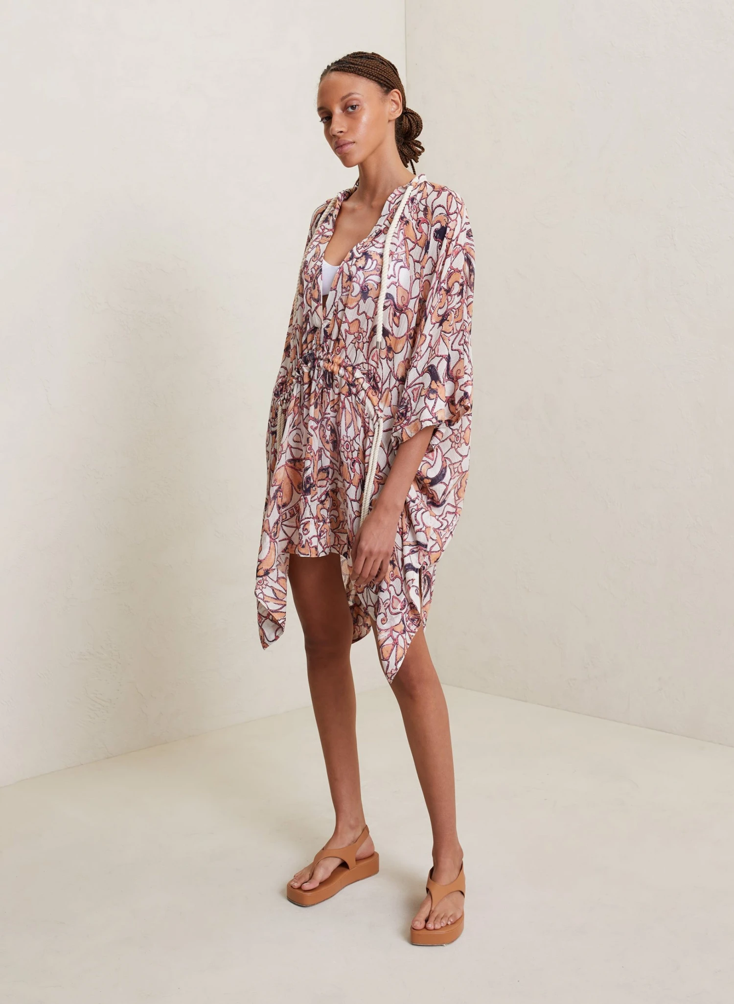 The Pacha Coverup is crafted from our silk-linen blend in a white abstract floral print. This billowing silhouette is cut for a roomy fit, featuring an adjustable drawstring waist, plunging V-neckline, and Kimono-style sleeves. Shop Swimsuits
