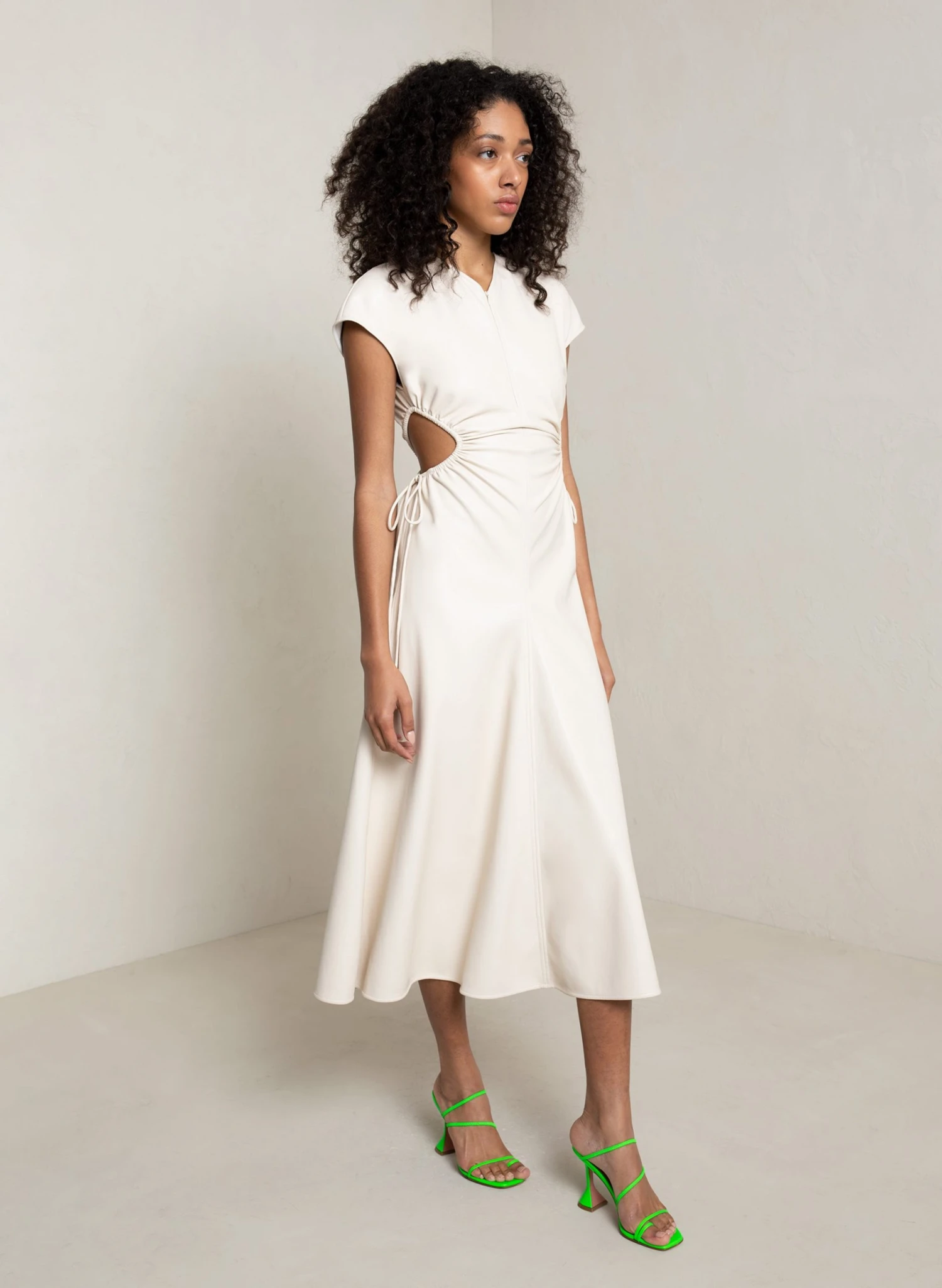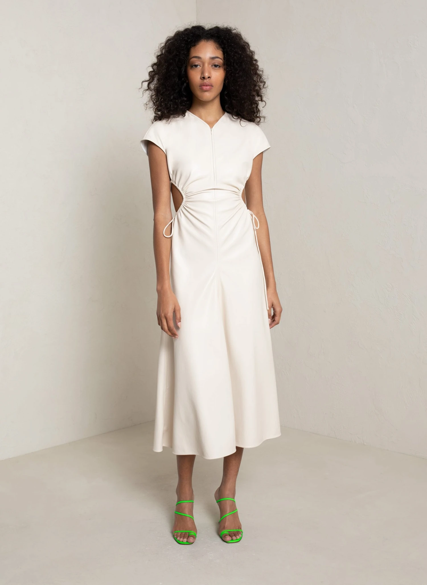 The Syna Dress is crafted from our vegan leather in a soft cream hue. This midi silhouette features cap sleeves, adjustable side cutouts, and a keyhole back. Shop Dresses