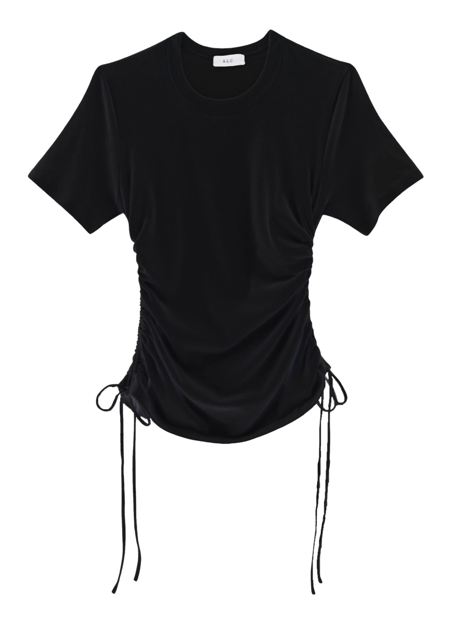 The Austin Tee is crafted from our soft vintage ribbed cotton in wardrobe-essential black. This crewneck silhouette features short sleeves and ruched detailing along the side to wear long or cropped.